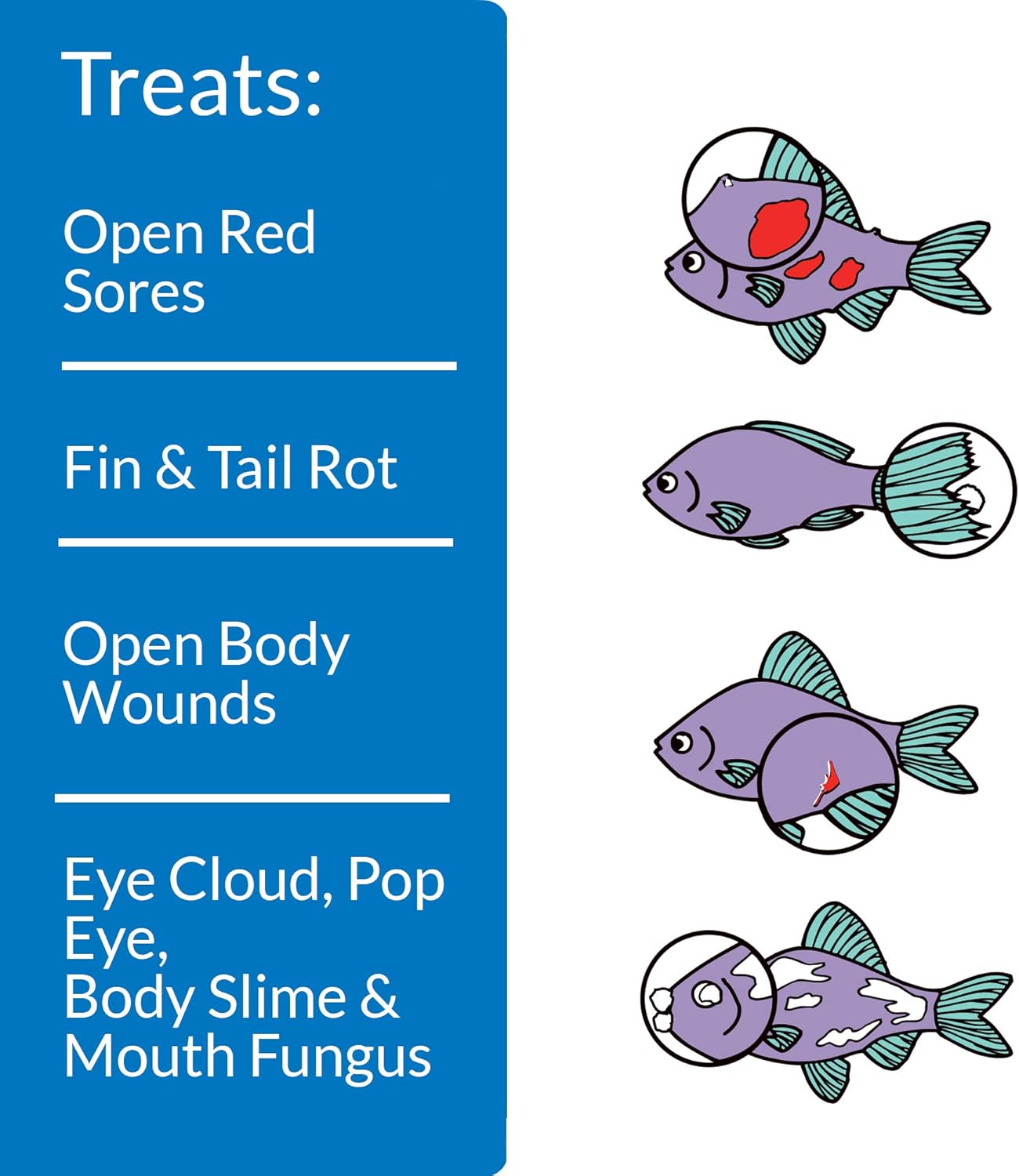 - Heals bacterial infections and repairs damaged fins, ulcers and open wounds