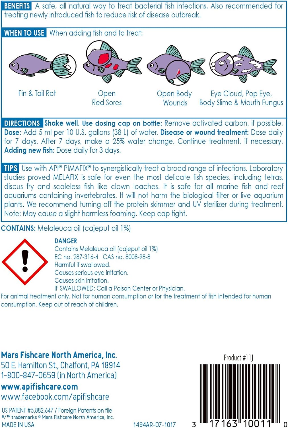 - Contains one (1) API MELAFIX Freshwater Fish Bacterial Infection Remedy 16-Ounce Bottle