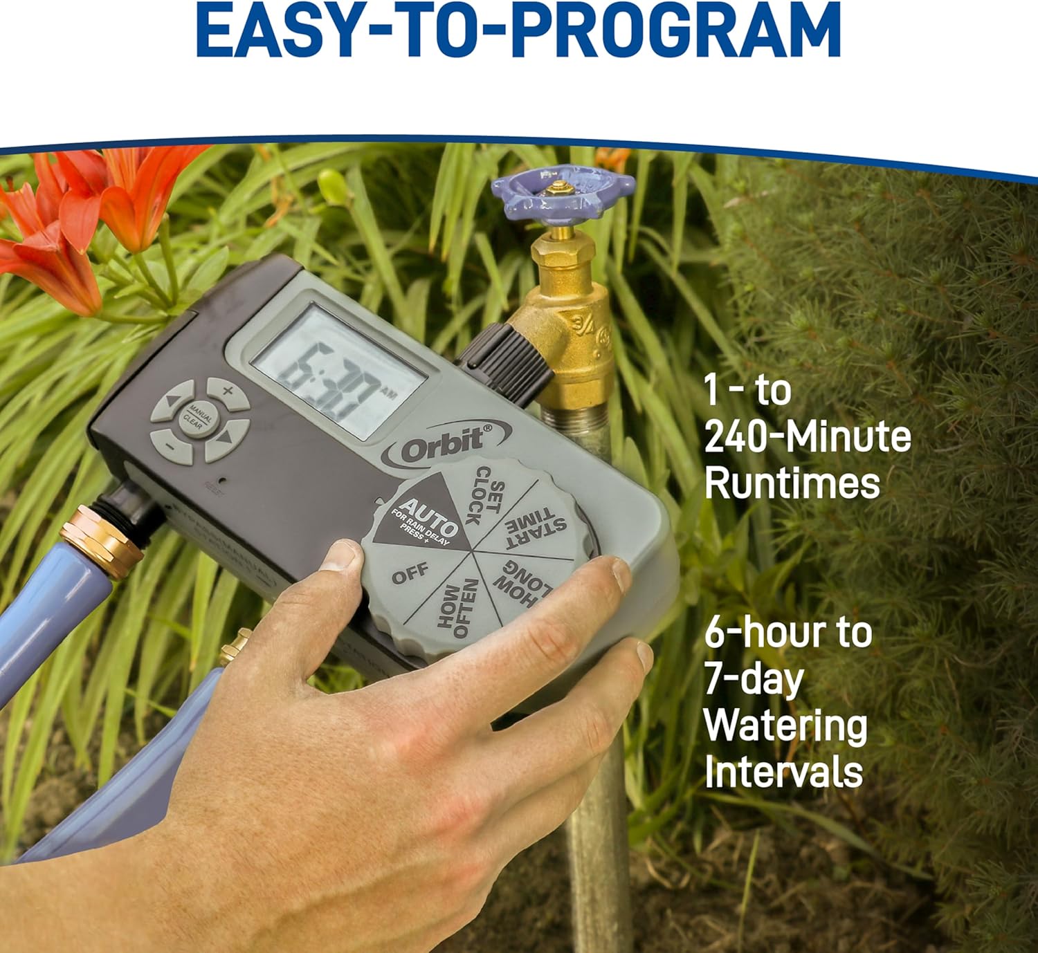 - CONSERVE WATER: Automate your watering routine! This timer shuts the water off for you, giving your yard just the right amount of water.