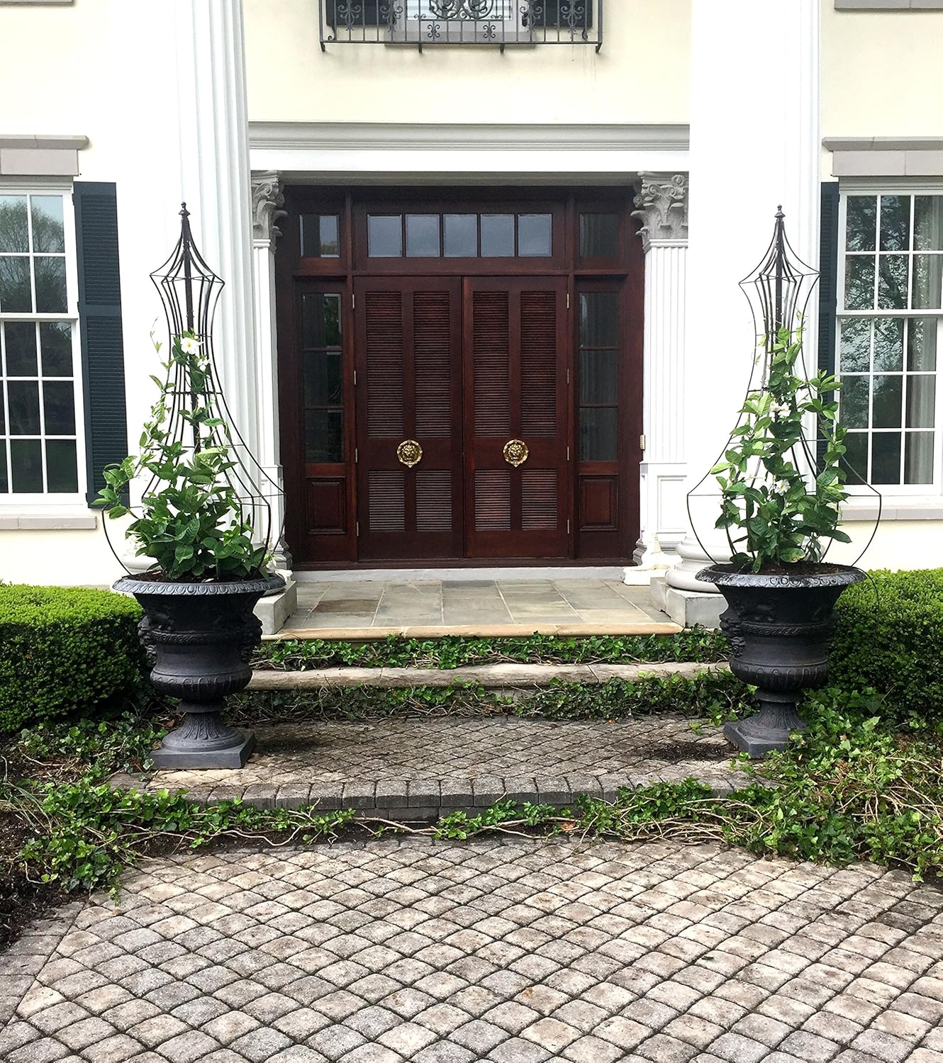 - Unique wrought iron - Showcasing solid iron work, the trellis offers functional vine support, ideal for climbing plants such as rose, mandevilla, ivy, honeysuckle, clematis and jasmine. Great for garden wedding decoration. If you need a solid, beautiful trellis for your yard, look no further.