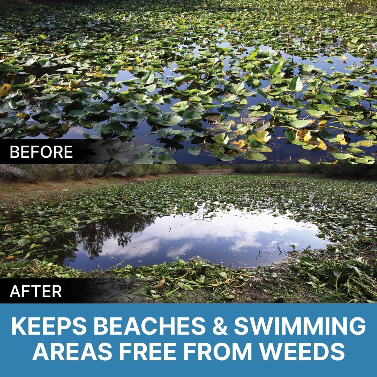- Chemical-Free Weed Removal: Highly effective mechanical weed control with no harsh chemicals. Ideal for all shorelines, especially pond and lake owners who live in states with chemical restrictions.