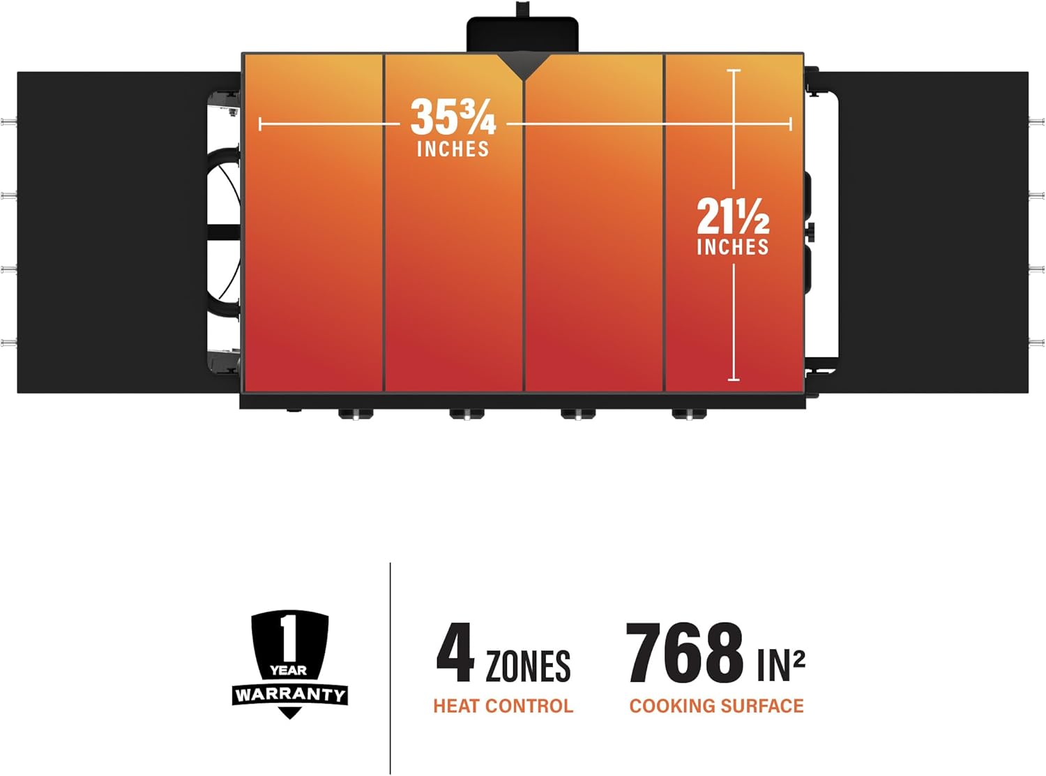 - Optimal Heat Control: Cook multiple items on the griddle top at different temperatures thanks to four independently controlled burners