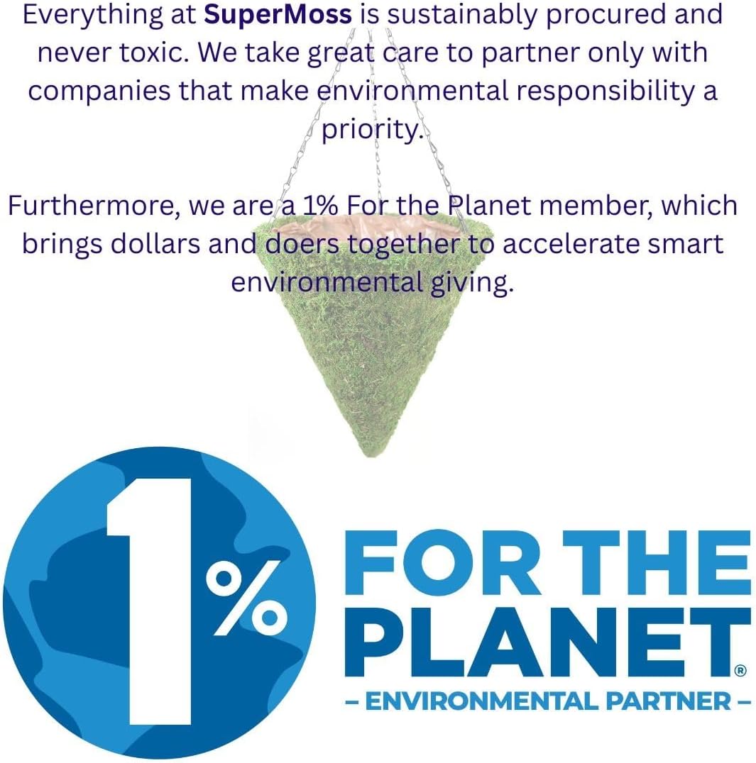 SuperMoss (29280 MossWeave Hanging Basket | Outdoor Hanging Planter with Moss | Decorative Plant Hanger for Porch, Balcony, Garden & Home Décor, Cone, Medium 12.5” D, Green