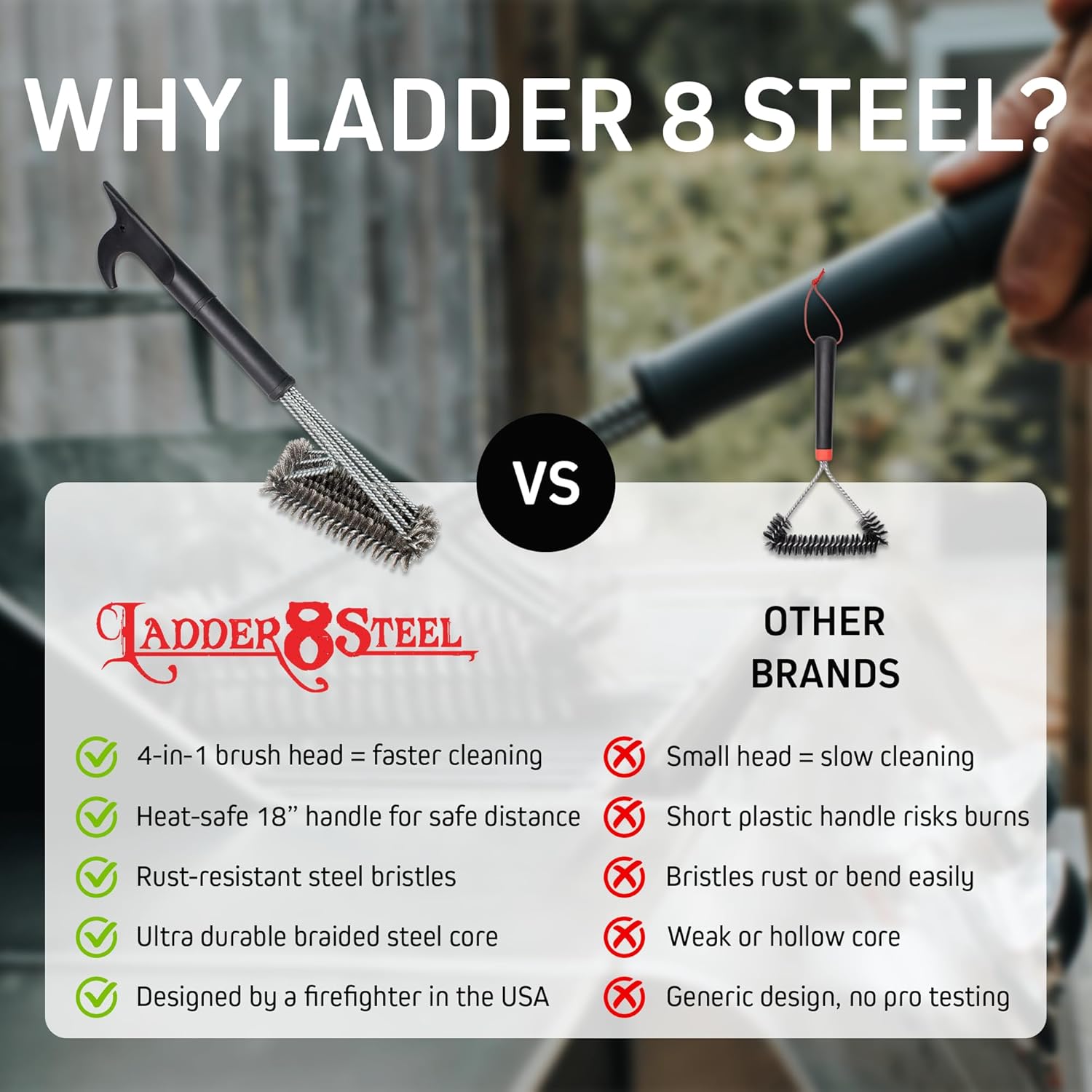 Heavy Duty Grill Brush for Outdoor Grill – Safe Grill Brush Designed by Firefighter | Barbecue Grill Brush & BBQ Brushes for Grill Cleaner | Durable & Safe for All Grates