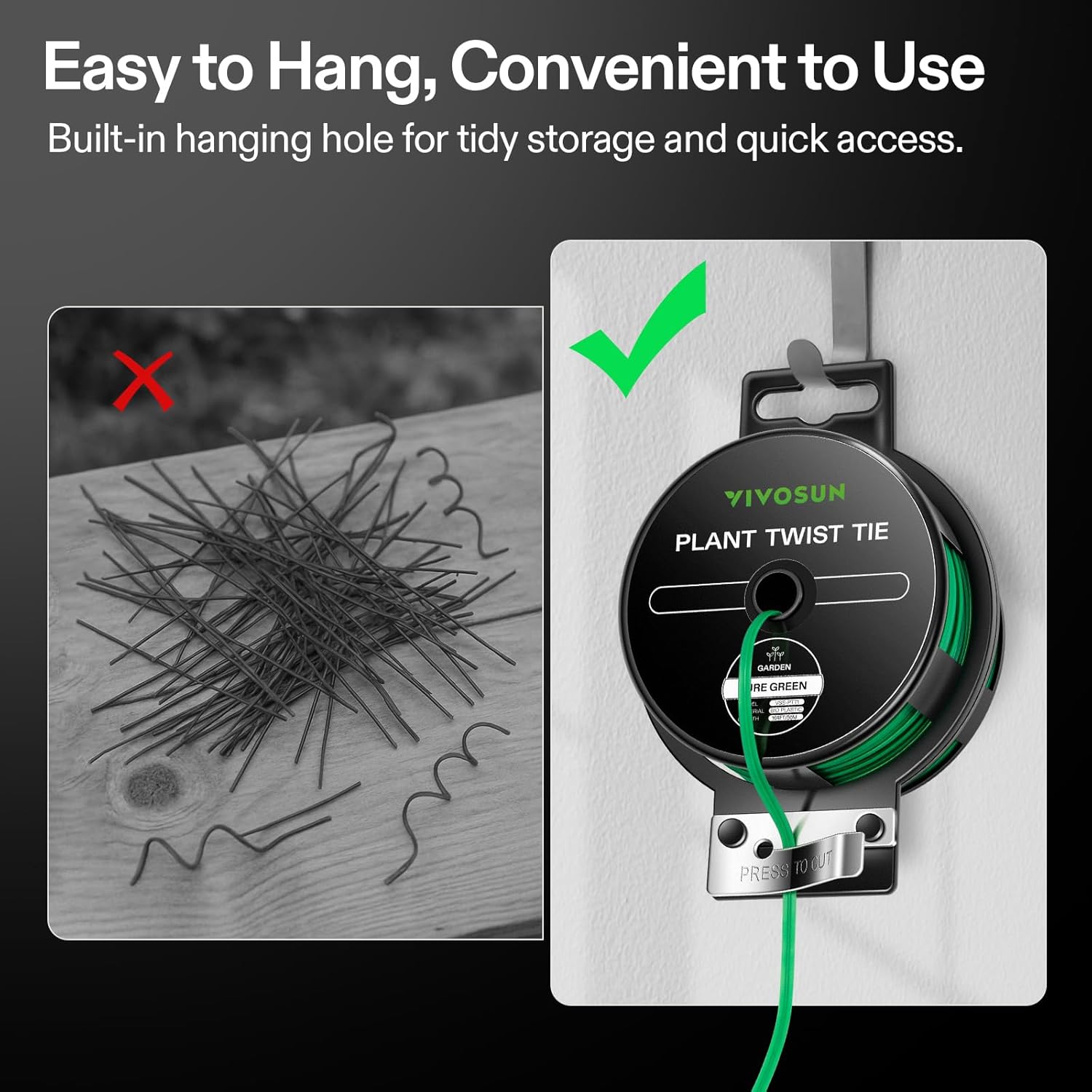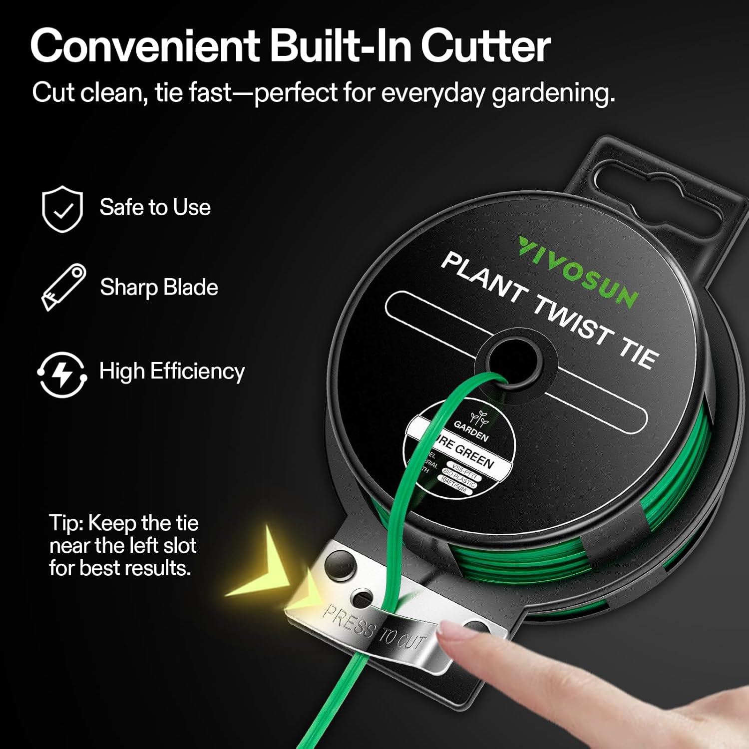 VIVOSUN Twist Ties, 164 ft (50m) PE-Coated Green Plant Ties with Cutter, Reusable & Flexible Tomate Ties for Plant Support, Indoor Outdoor Gardening, Cable Management, Home Office Organization