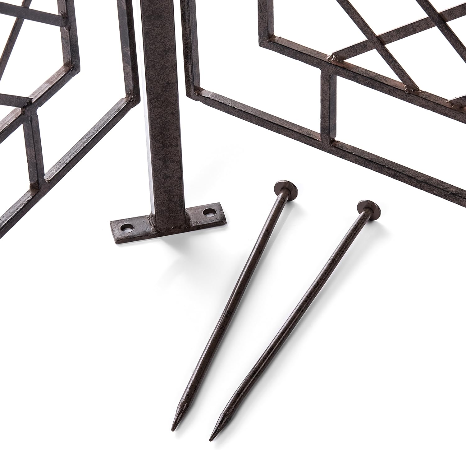 - Securely Packaged & Built To Last – Professionally packaged and requiring assembly, trellis is over 75 pounds, we recommend two people for assembly. The iron trellis is pleasing to the eye and perfect for growing vines or purchased as a pair to create private space. With dimensions of 51 inches wide by 72 inches high (plus 12 inch ground spikes) this heavy-duty trellis offers a secure anchoring system that will happily support large plant material.