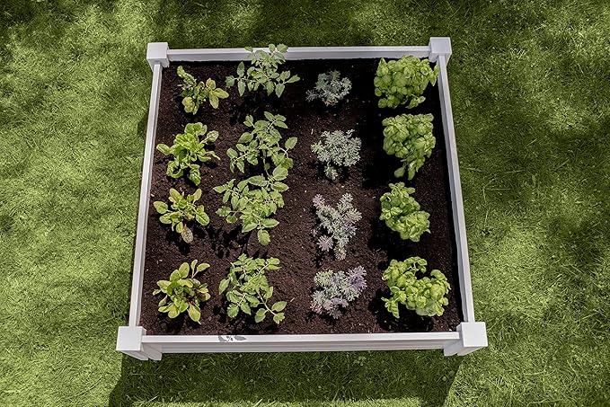 Vita Classic 4 Foot x 4 Foot x 11 inch White Vinyl Raised Modular Garden Bed, White, PVC, BPA and Pthalate Free, VT17108