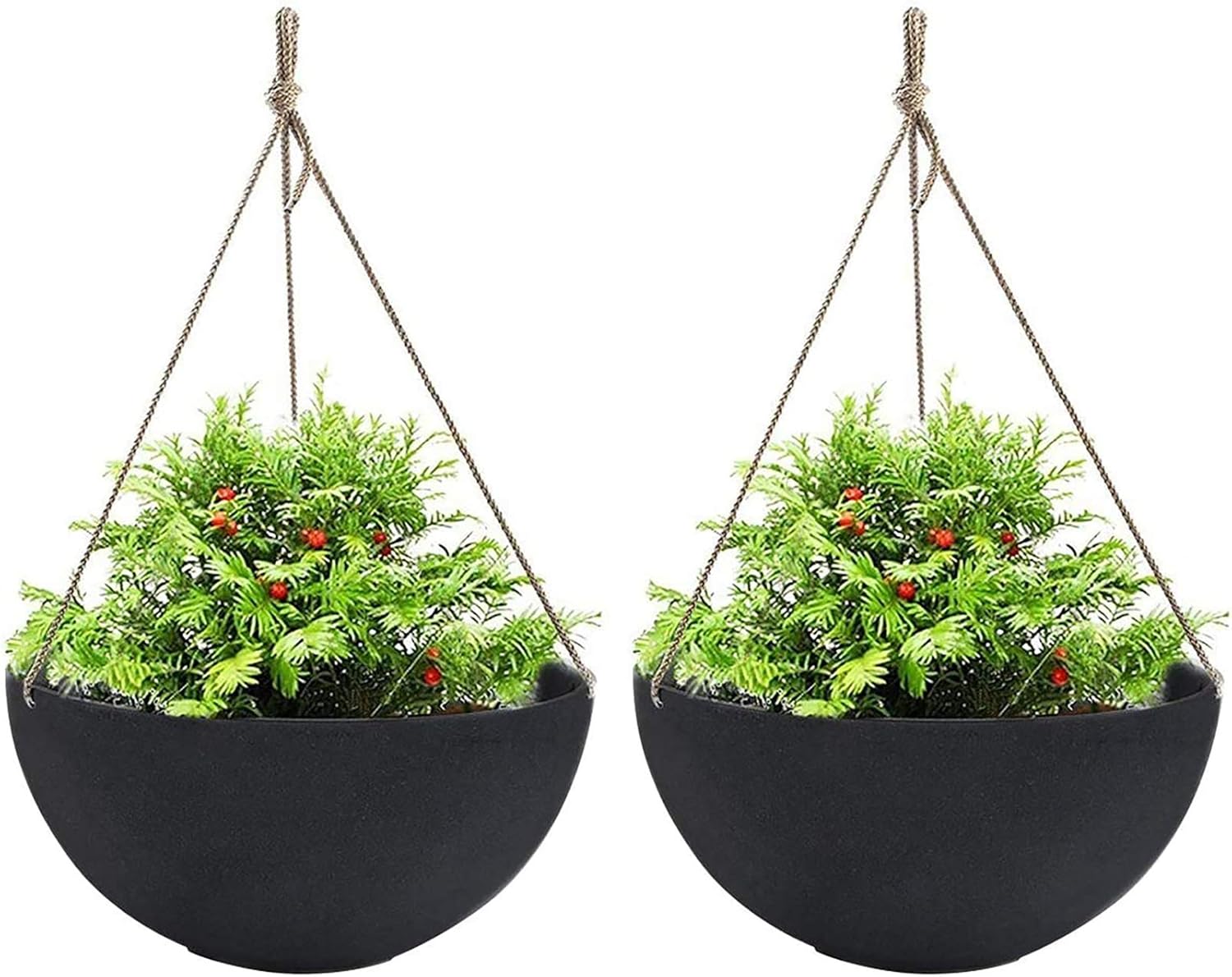 LA JOLIE MUSE Hanging Planters for Outdoor Plants, Large Hanging Planter with Drain Holes, Black Hanging Flower Pots (13.2 Inch, Set of 2)