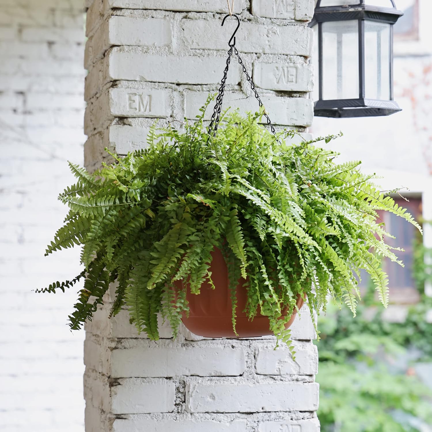 YIKUSH Hanging Planter for Indoor and Outdoor Plants 2 Pack 12 inch Flower Pot Plastic Plant Pot with Drainage Hole and Absorbing Tray(Terracotta)