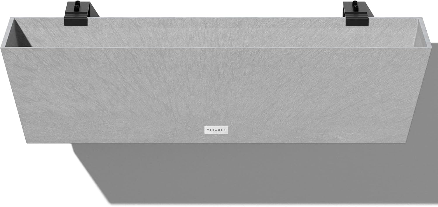 Veradek Pure Series Railing Planter - Plastic Hanging Planter for Outdoor Balcony/Fence | Durable All-Weather Use with Adjustable Brackets | Modern Décor for Flowers, Succulents, Hanging Plants