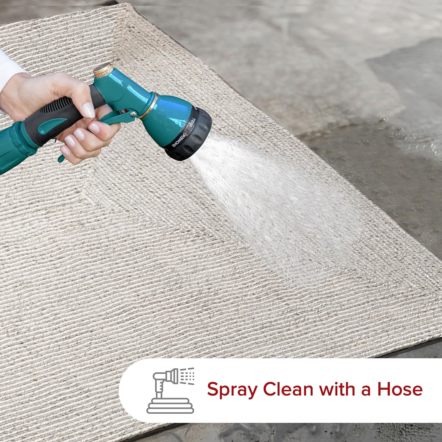 - Easy to clean, this rug can be hosed down outside and spot treated for any mild stains using rug cleaner