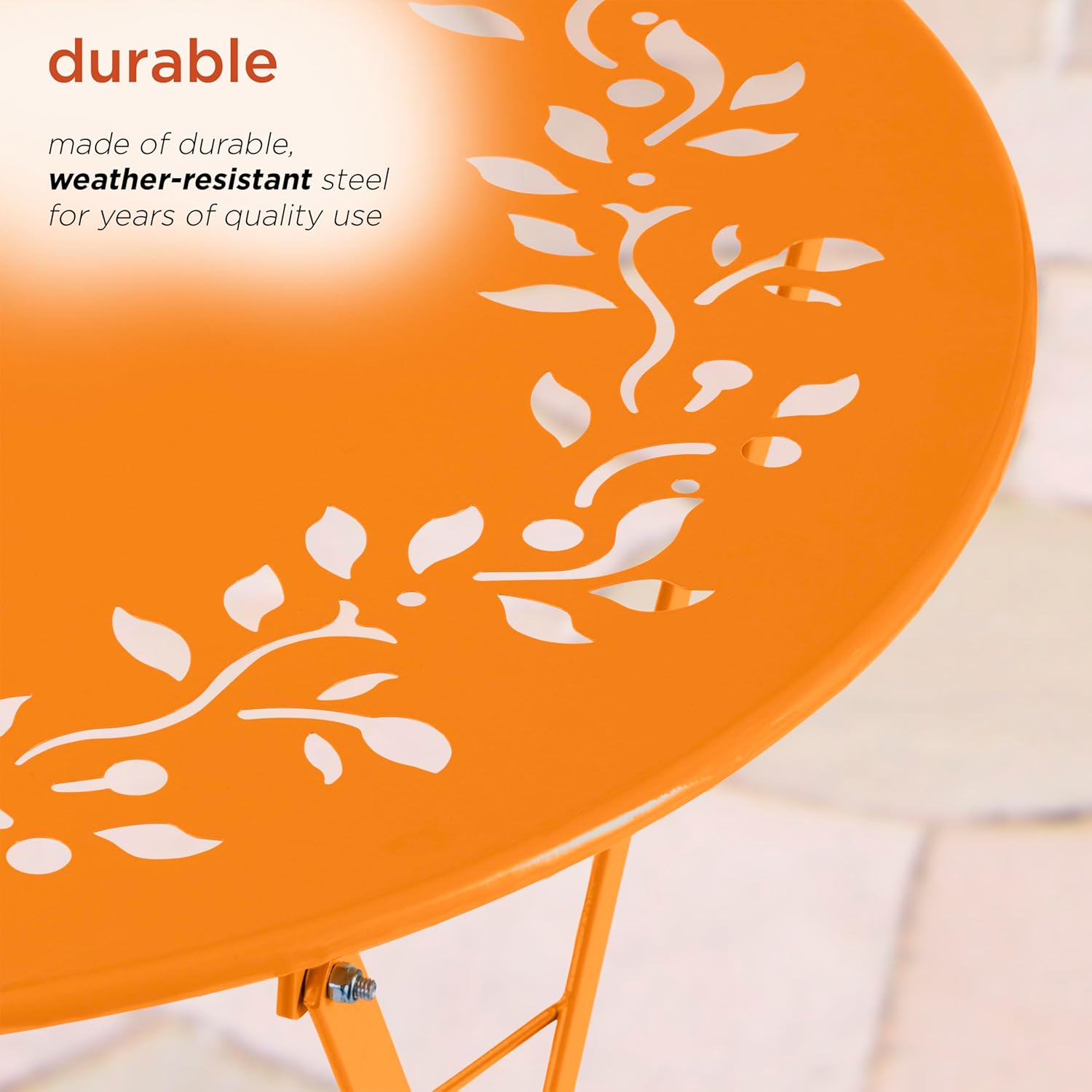 - PATIO SEATING SET: Bright, vibrant colored steel 3-piece bistro set featuring 2 folding chairs and table, and provides a pop of color to your indoor or outdoor living space or patio