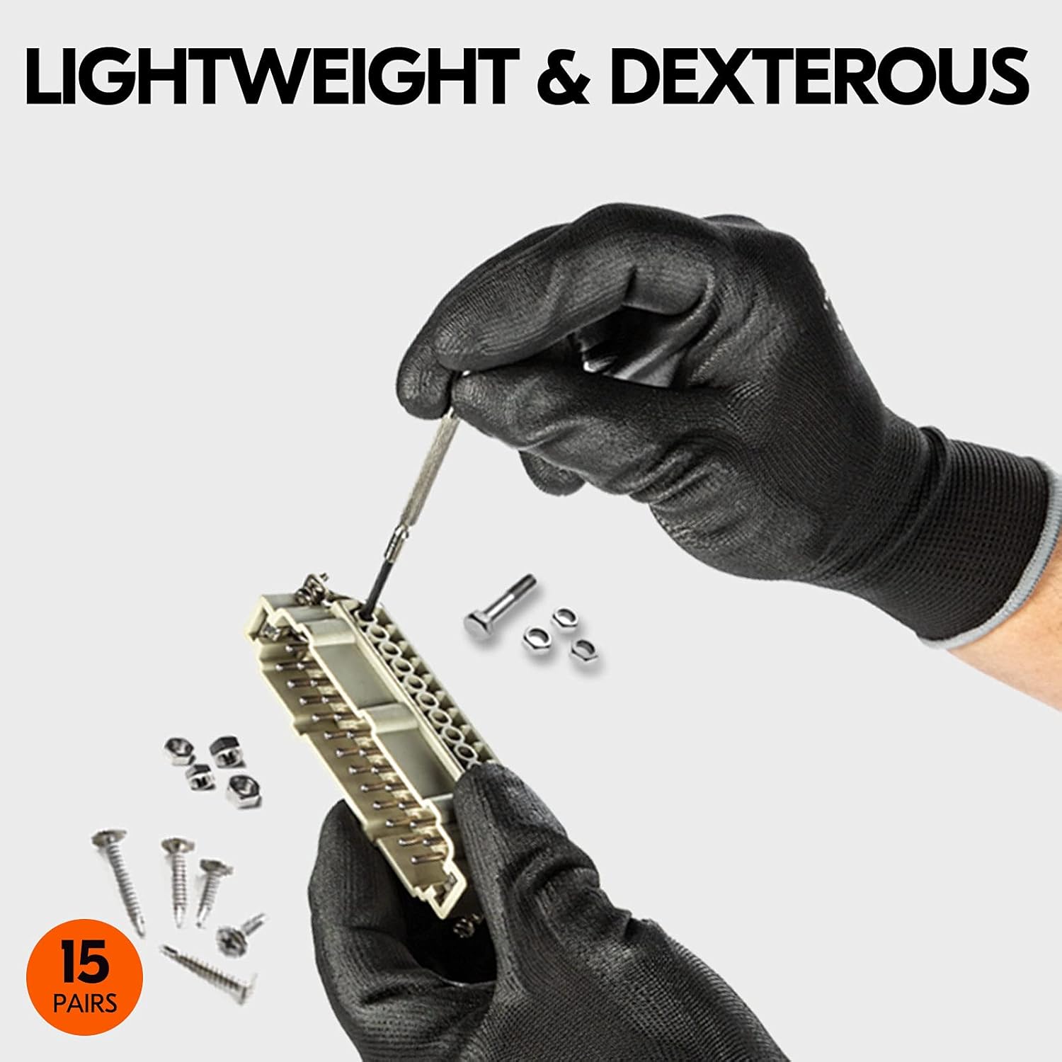 Vgo... 15-Pairs Safety Work Gloves, Gardening Gloves, Polyurethane Coated, Dipping Gloves, Latex Free (Size L, Black, PU2103)
