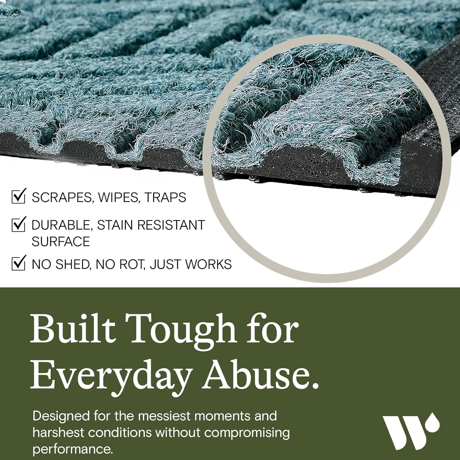 - MESS-FREE: Our exclusive “Water Dam” technology traps and holds up to 1.5 gallons of water per square yard, preventing spills and messes. The water-resistant border keeps water and dirt securely on the mat’s surface, ensuring your floors stay clean and dry.