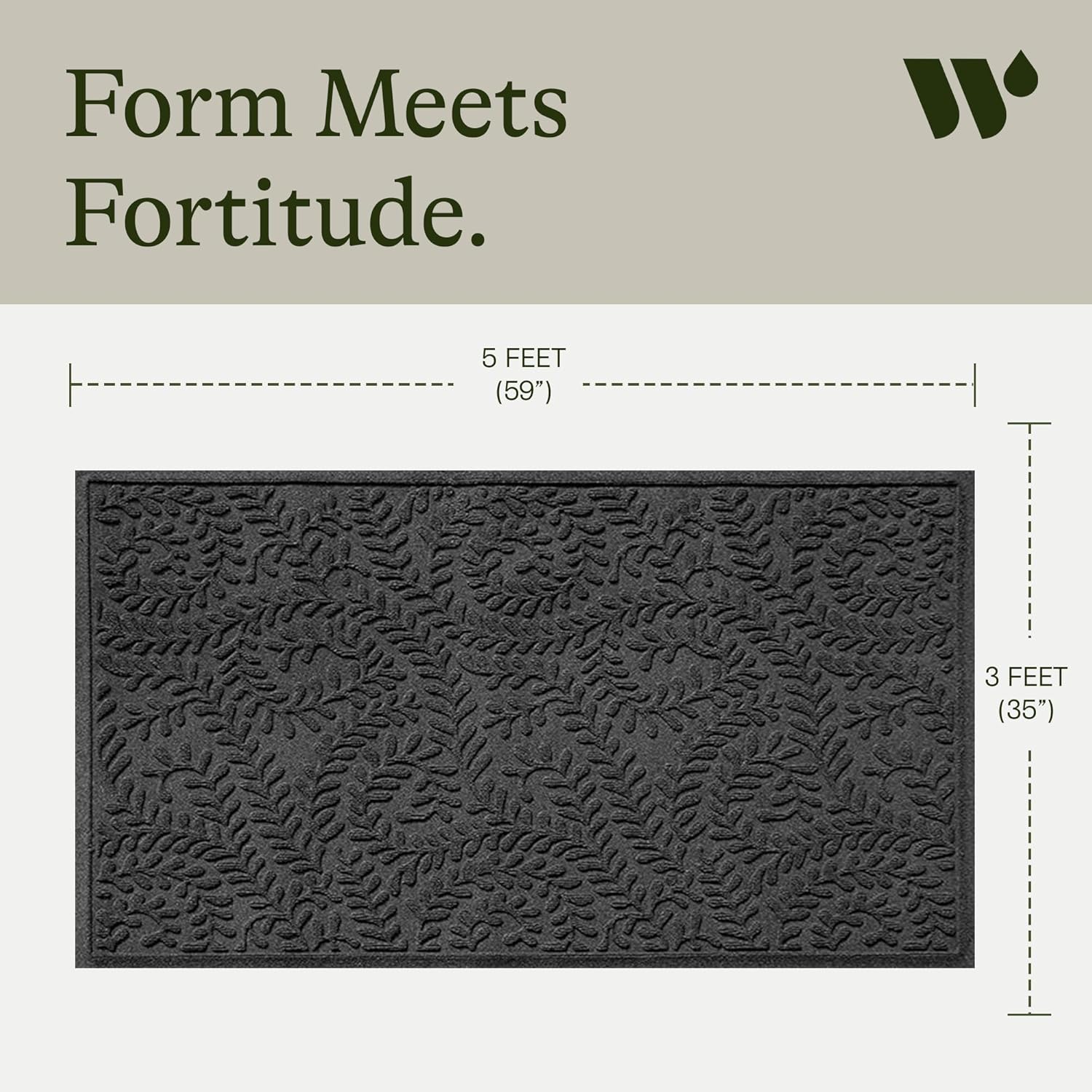 WaterHog Indoor/Outdoor Use Door Mat, 3' x 5', Made in USA, Welcome Mat for Front Door, Durable, Water-Trapping Floor Rug, Decorative, Skid-Resistant Entryway Rug, Boxwood Collection, Charcoal