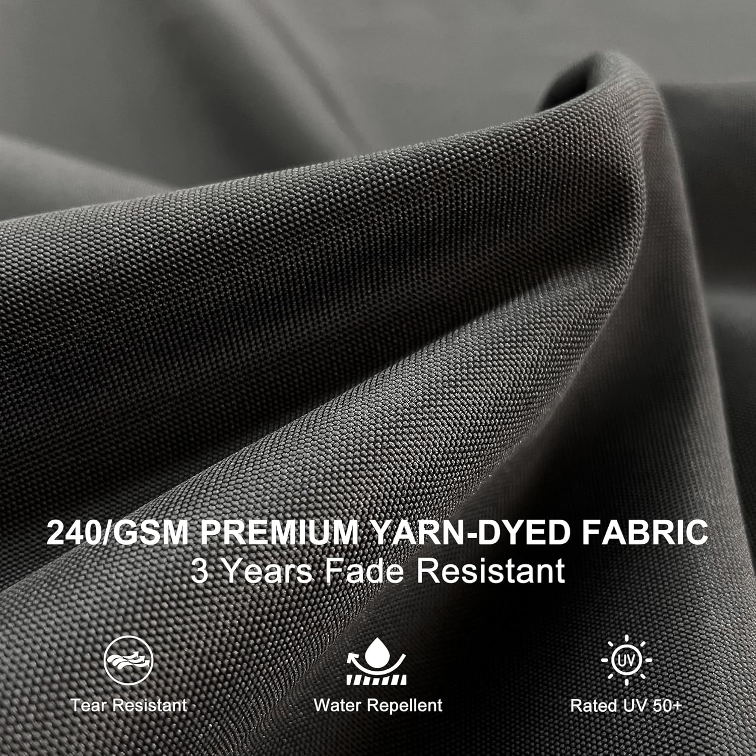 - High quality 240/gsm yarn-dyed polyester fabric, UV resistant, water-repellent and colorfast fadeless