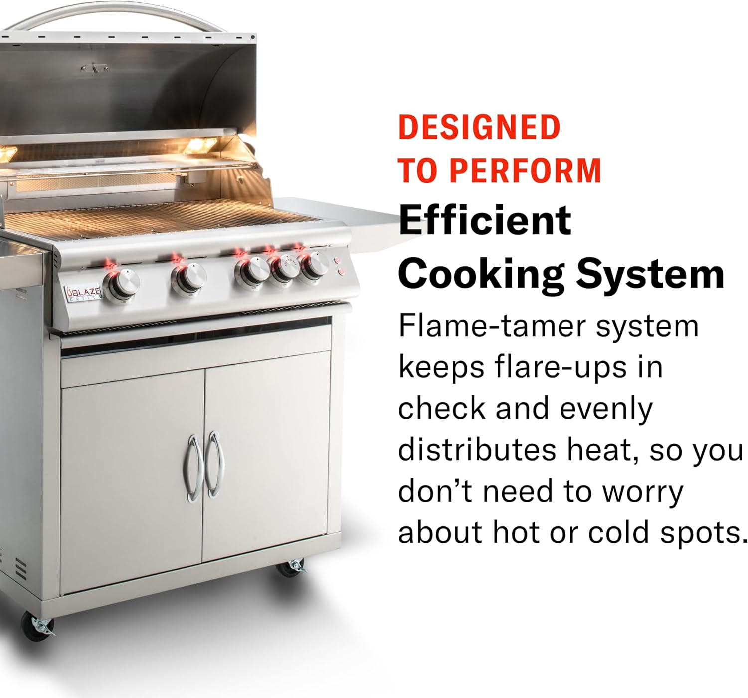Blaze Outdoor Grill | 32-Inch Stainless Steel Propane BBQ Grill | 4 Burner Barbecue | Premium Outdoor Kitchen Grilling | Rear Infrared Burner & Grill Lights | BLZ-4LTE2-LP