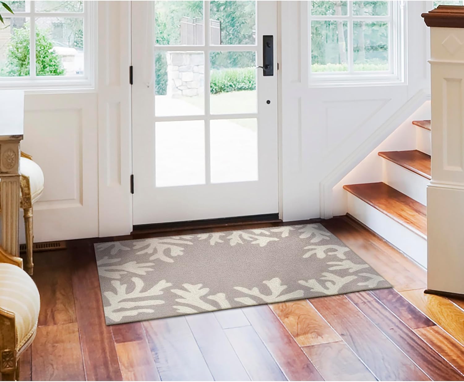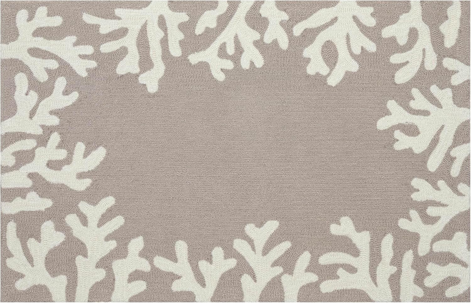 Liora Manne CAPRI Indoor/Outdoor Handmade Synthetic Blend Durable Area Rug - Traditional Border Coastal Beach Accent (Coral Border Silver) (2'6" x 4')