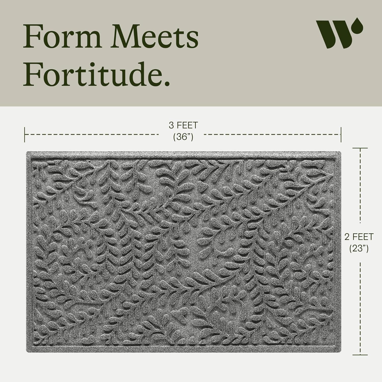 WaterHog Indoor/Outdoor Door Mat, 2' x 3' Made in USA, Durable & Skid-Resistant Front Door Rug, Decorative, Water-Trapping & Heavy-Duty Entryway Floor Mat For Your Home, Boxwood Collection Medium Grey