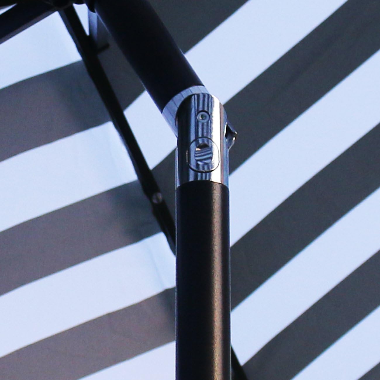 Sunnyglade 9' Solar 24 LED Lighted Umbrella with 8 Ribs Adjustment and Crank Lift System for Patio - Black and White