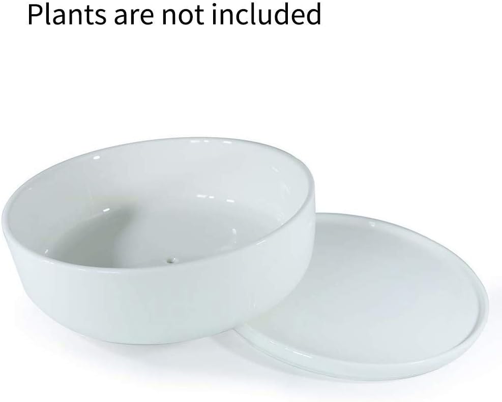 SQOWL 8 inch White Round Ceramic Succulent Planter Pot Modern Flower Cactus herb Big Planter with Removable Saucer Indoor or Outdoor