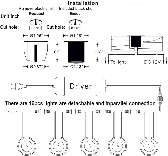 - 【Detachable】The 16pcs led dot lights are detachable and in parallel connection, you can only install part of them based on your need. (The led deck light kits still work fine if one or two of the deck lights fails.) ( if you need an extra larger transformer that has a photocell sensor with a timer function to used for more quantity deck lights can search ASIN: B0BVR717PS )or ASIN: B0CYBSB3JL