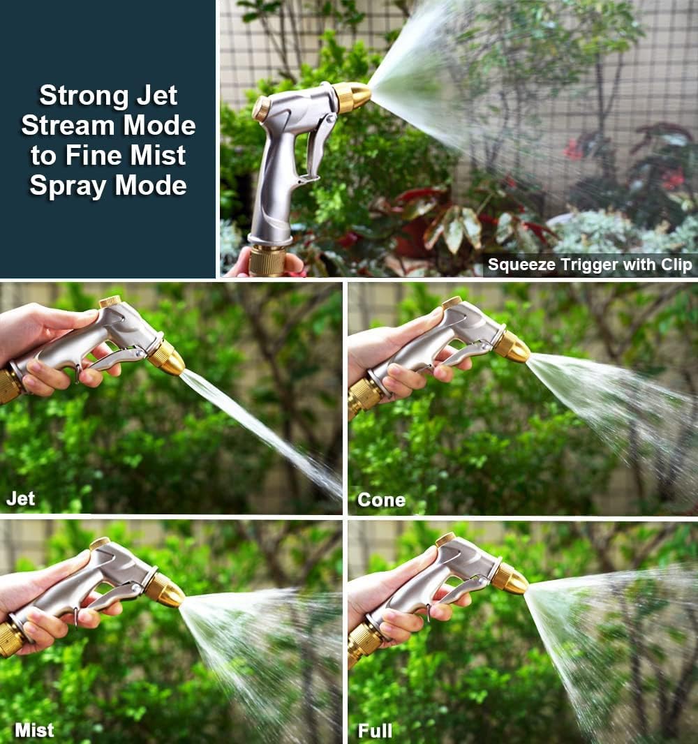- [LEAK-PROOF]-One piece design and a rubber hose washer provides a durable and tight seal to eliminate leak. Consistent water flow in all positions and directions, our spray nozzle also has completely shutting off function. The adjustable copper brass sprayer can not only enhanced the overall quality of hose nozzle, but perfectly prevent the mental rust.