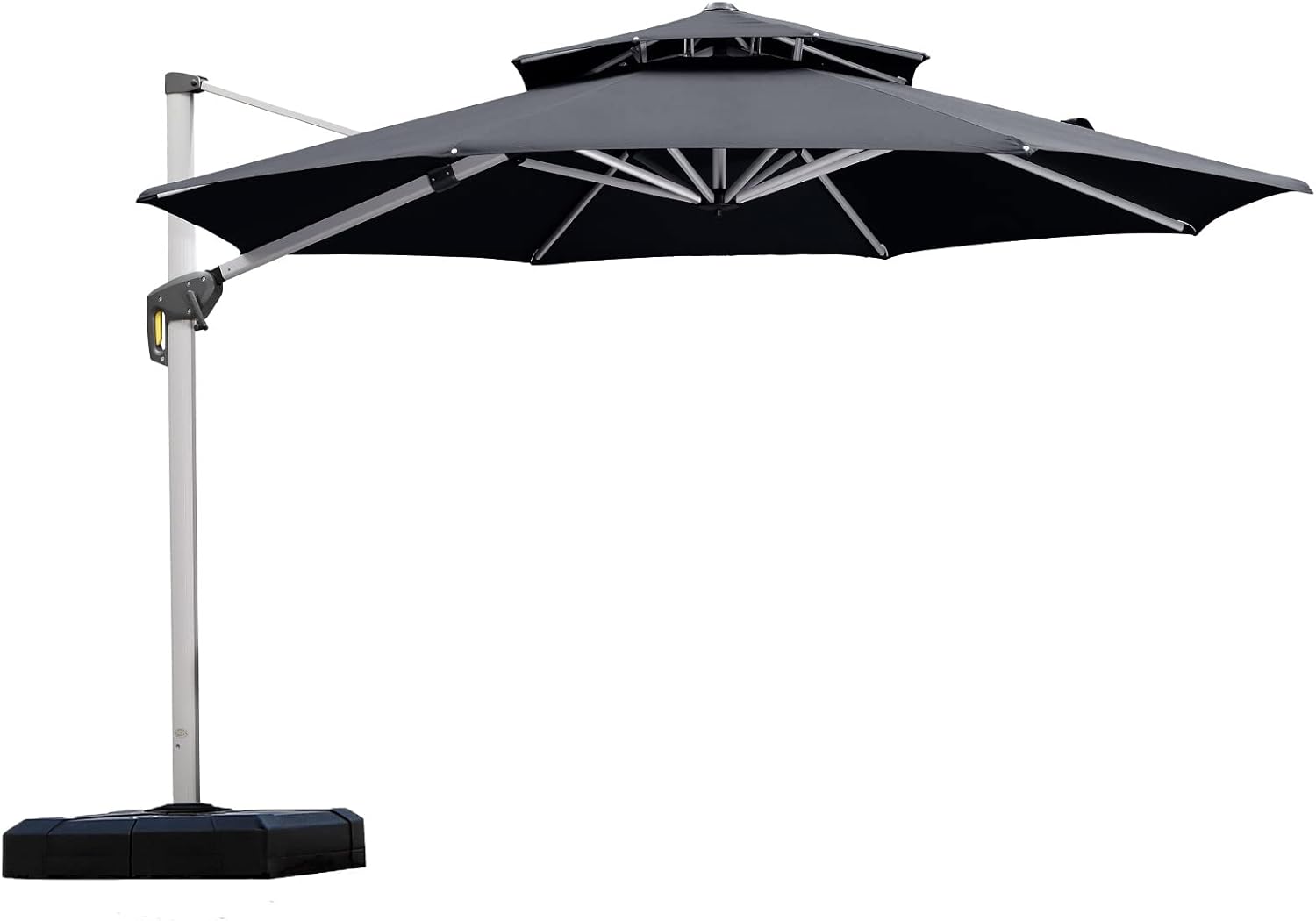 PURPLE LEAF 11 Feet Patio Umbrella Outdoor Round Umbrella Large Cantilever Umbrella Windproof Offset Heavy Duty Sun for Garden Deck Pool Patio, Grey