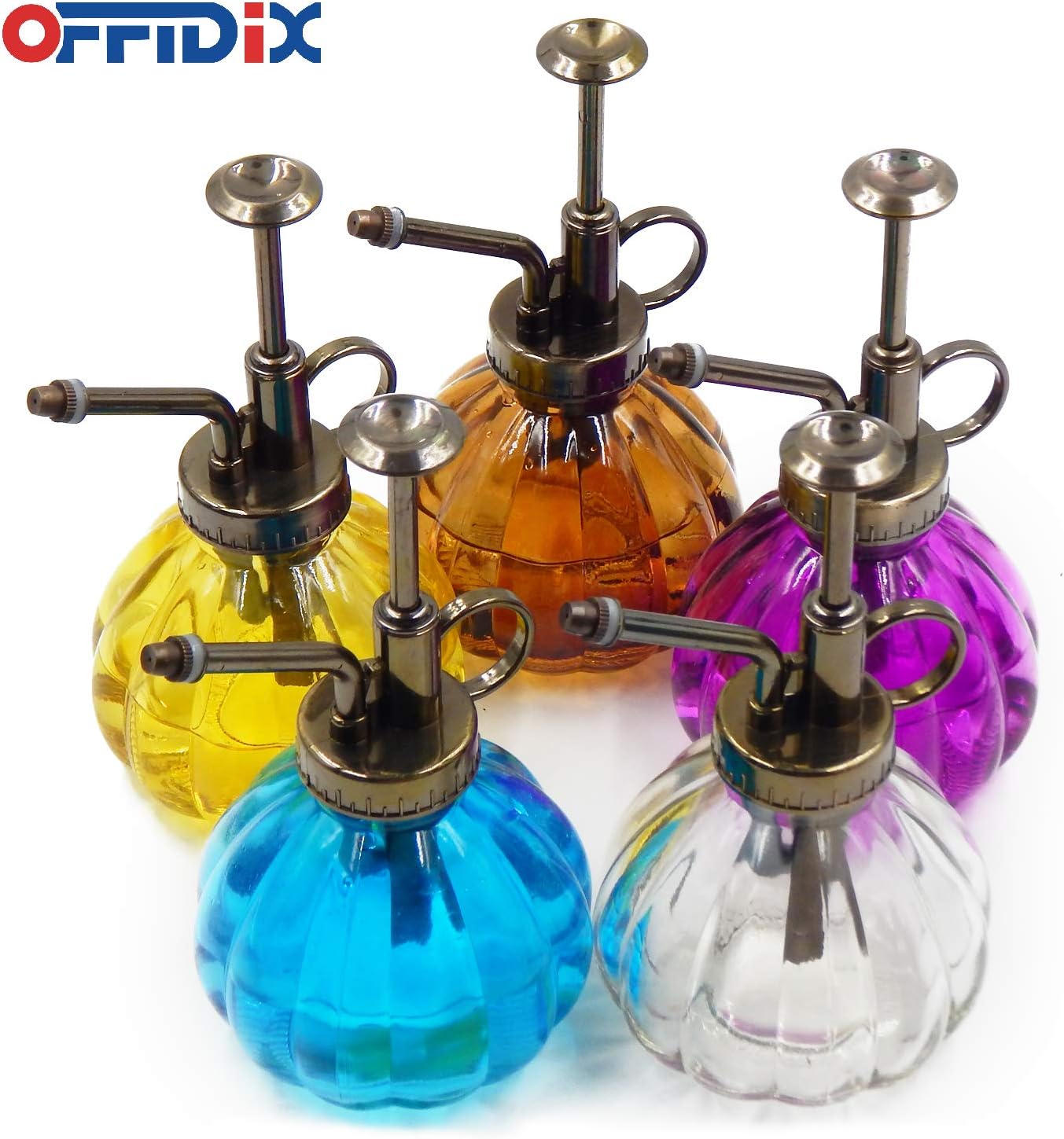 OFFIDIX Glass Watering Spray Bottle,Plant Mister Flower Water Spray Bottle Can Pot 6.3" Tall Vintage Pumpkin Style Spritzer Bronze Plastic Top Pump One Hand Glass Watering Can Indoor(Brown)