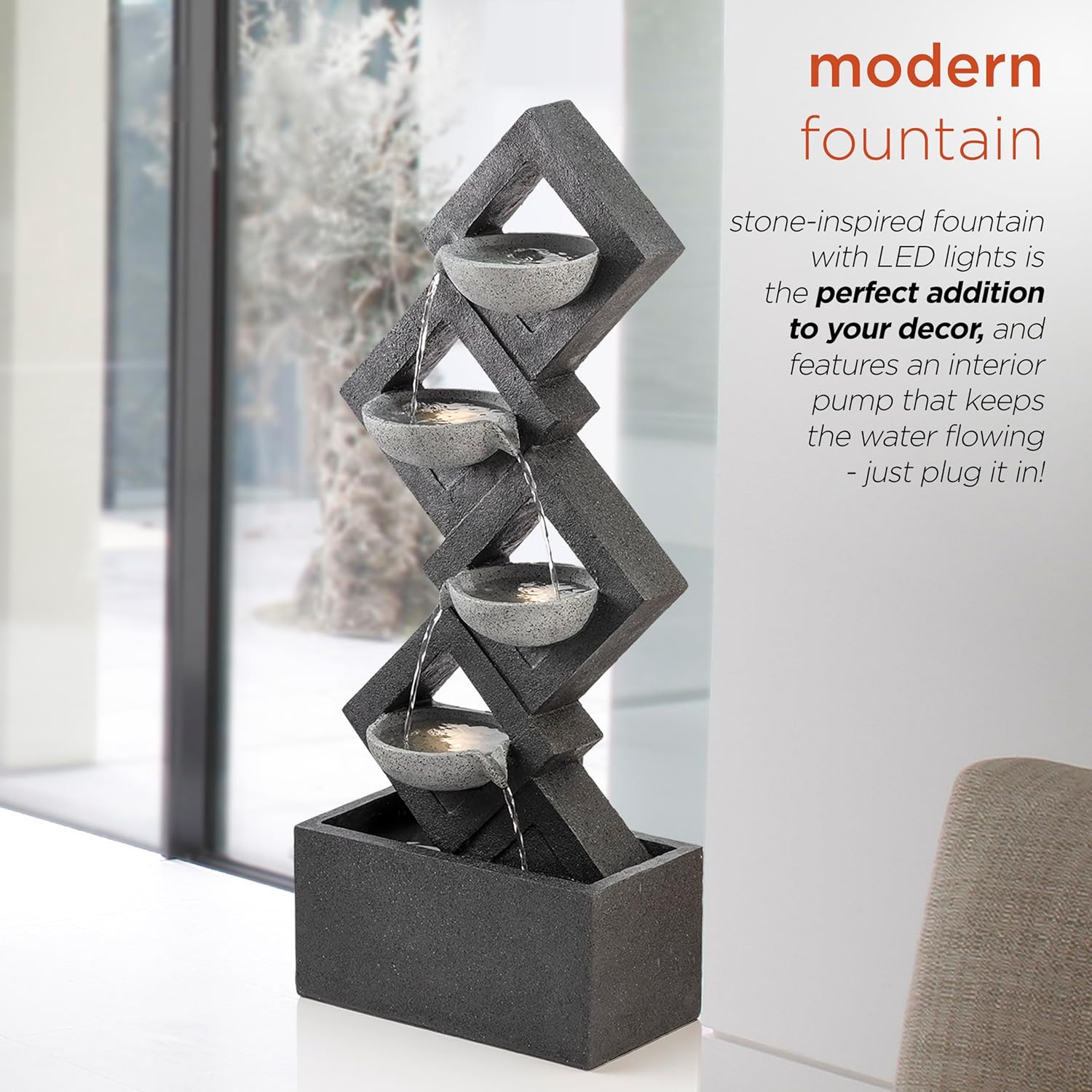 - MODERN FOUNTAIN: Stone inspired fountain with LED lights is the perfect addition to your decor, and features an interior pump that keeps the water flowing just plug it in!