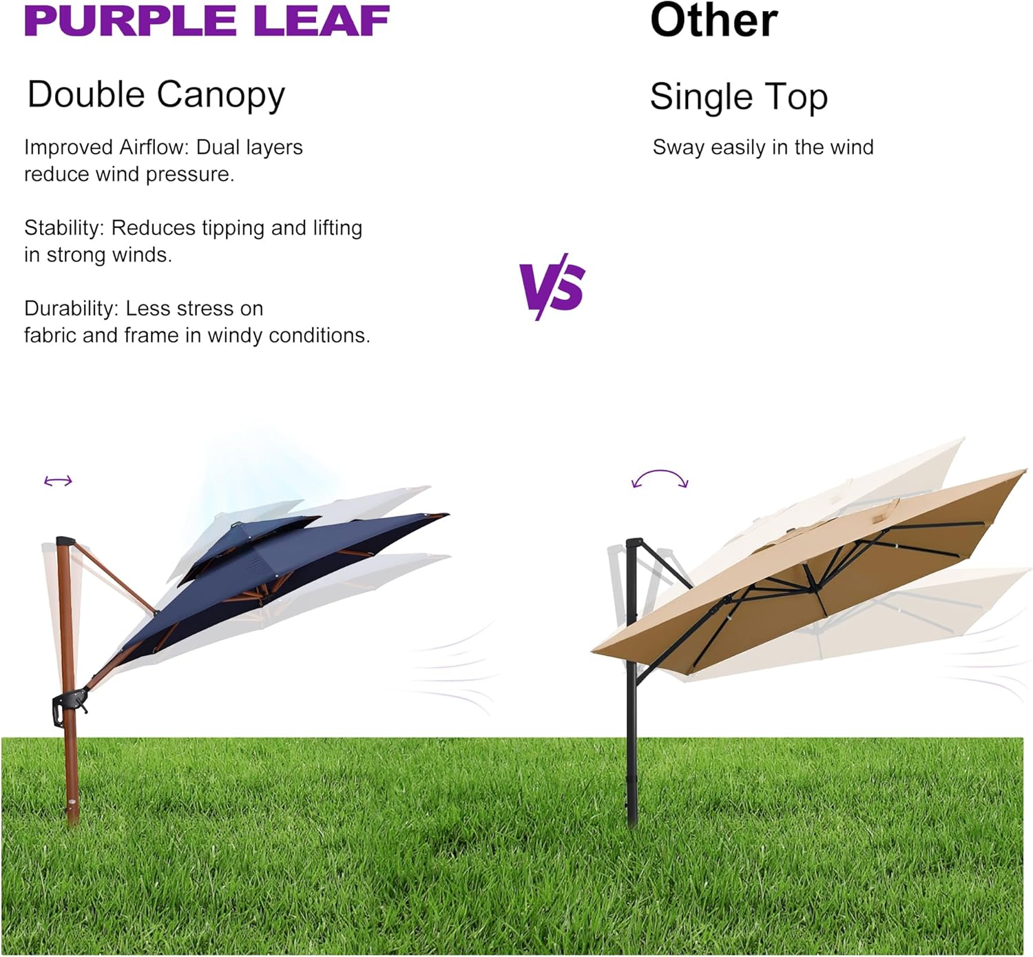 - Structural stability: 8 all-aluminum poles and a wider outdoor umbrella tray, anti-oxidation spray painted, extension of time of use