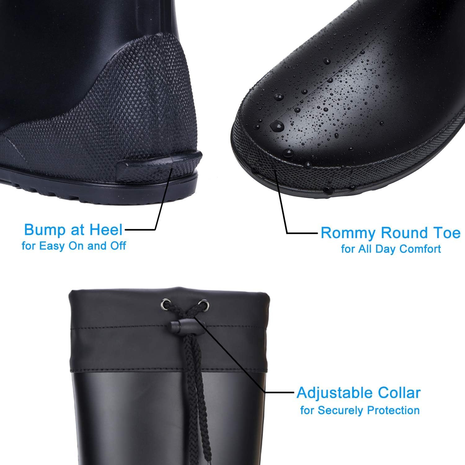 - Adjustable Collar: Secure tie at the top prevents water dropping into the boot