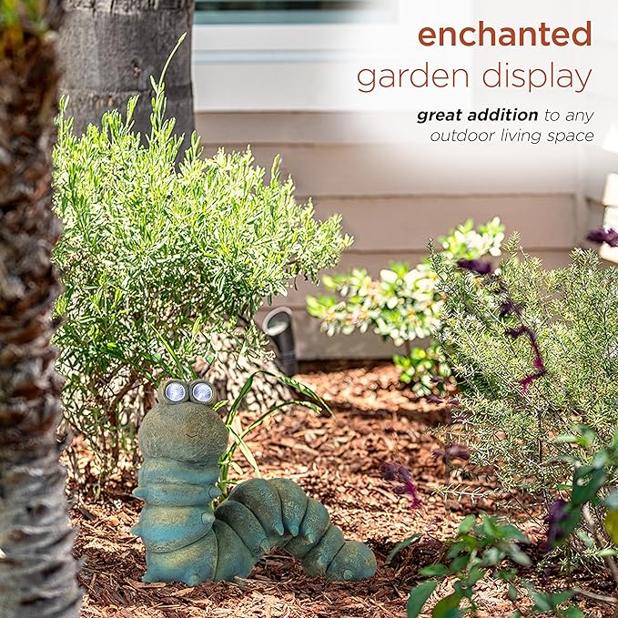 - OUTDOOR DÉCOR: Whimsical statue features an adorable caterpillar powered by solar energy to offer your guests a warm welcome, and provides a unique and decorative addition to your exterior décor