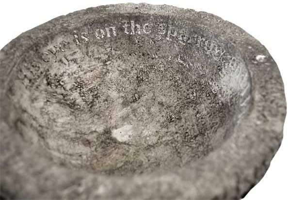 - Phrase "His eye is on the sparrow and I know He watches me" encircles the interior of the basin
