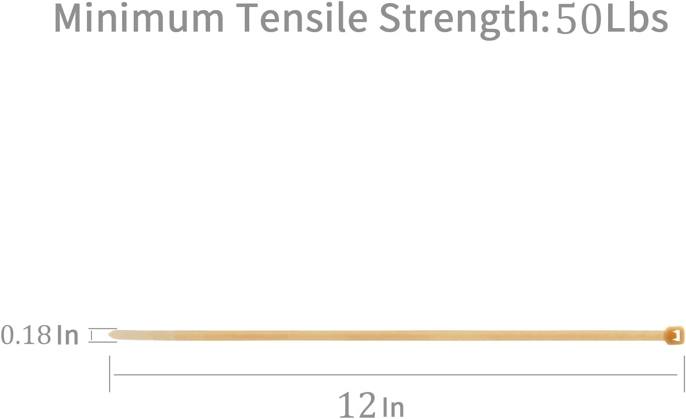 XINGO 100PCS Cable Zip Ties Heavy Duty, Premium Nylon Plastic Wire Ties with 50 Pounds Tensile Strength, Self-Locking Black Nylon Zip Ties for Indoor and Outdoor (12 inch, Gold)