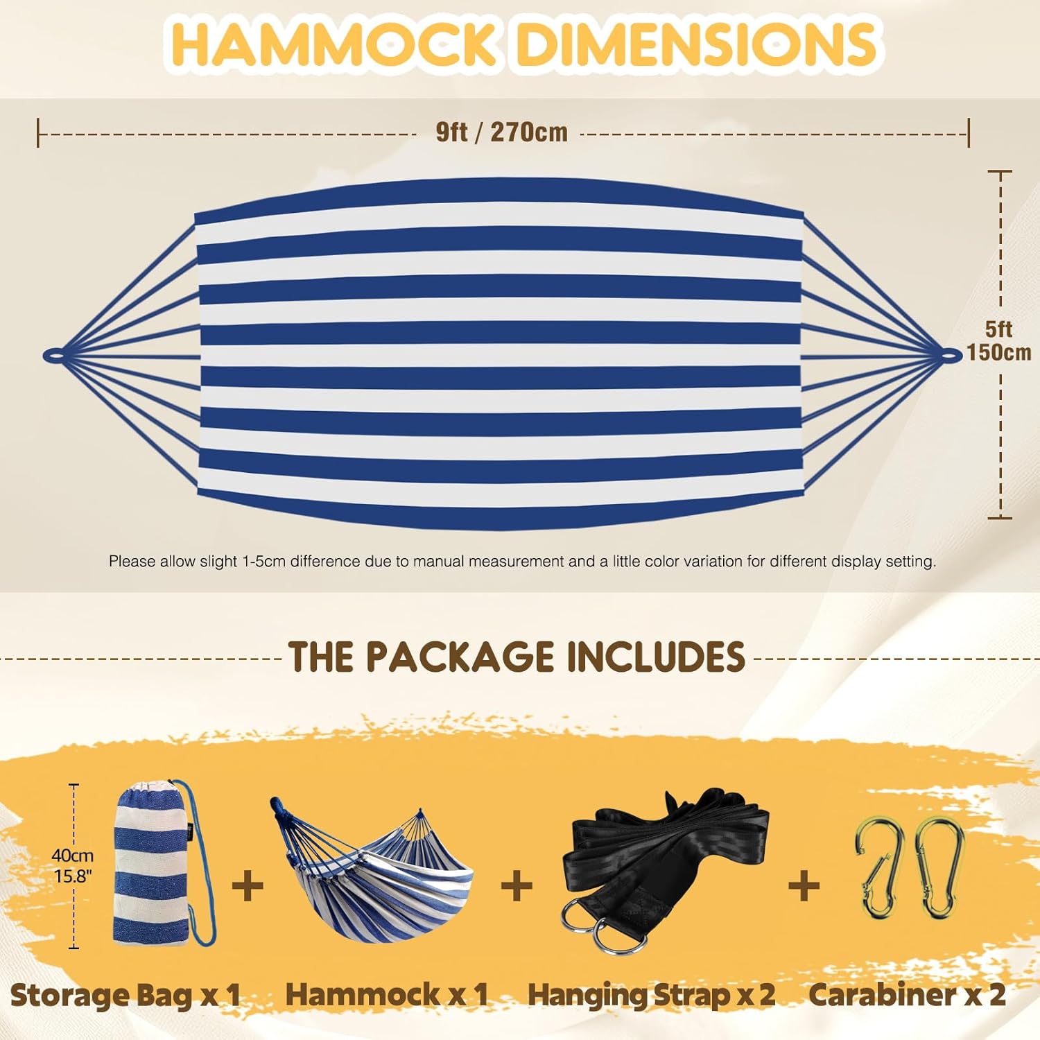 ANYOO Cotton Hammock Portable Camping Hammocks for Hanging Sturdy Garden Comfortable Fabric Hammock with Tree Straps Up to 660lbs with Travel Bag for Camping Outdoor/Indoor Patio Backyard