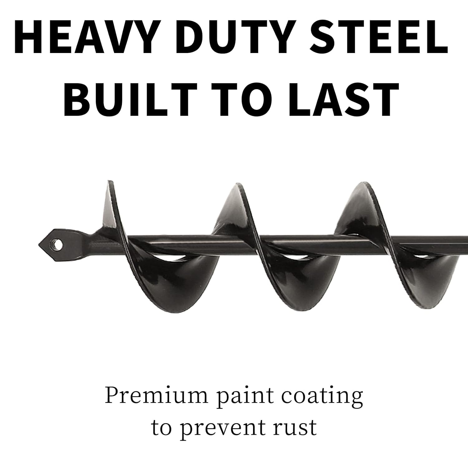 - Planting auger for drill made of heavy duty steel with black paint coated for long service time. Extended length 16.5inch will make you stand up digging holes for planting instead bending over, really necessary tool in your planting season. Heavy duty solid shaft will work on any kinds of soils.