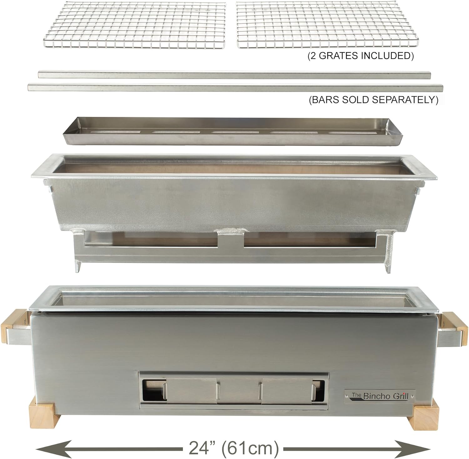 GR610S – 24" Tabletop Yakitori Grill – Japanese Style Charcoal Robata BBQ – Binchotan Grill for Authentic Japanese Grilling – Made from Durable Stainless Steel