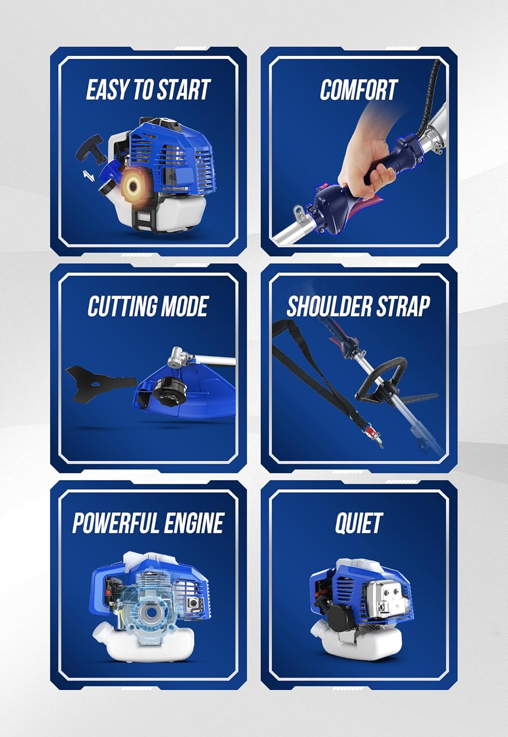 - Easy to start and comfortable operation: Easy start, start within 5 times pulling starter. Tool free air filter cover for better assembly, maintain, and operation.