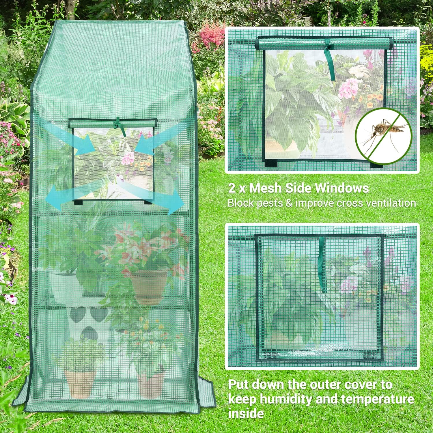 Ohuhu Greenhouse for Outdoors with Mesh Side Windows, 3 Tiers 4 Shelves Small Walk-In Green House Plant Stands Plastic PE Cover Outside Portable Warm House for Seedling Flowers Growing, 4.8x2.5x6.4 FT