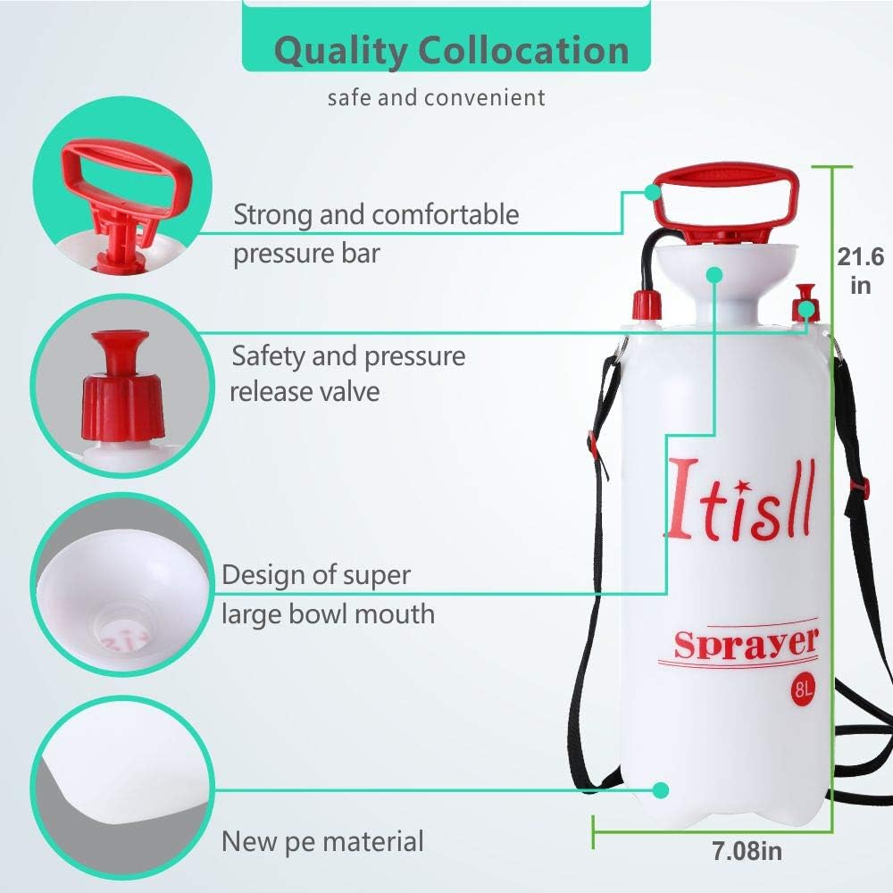 Itisll Portable Garden Pump Sprayer Brass Wand Shoulder Strap for Yard Lawn Weeds Plants 2Gal