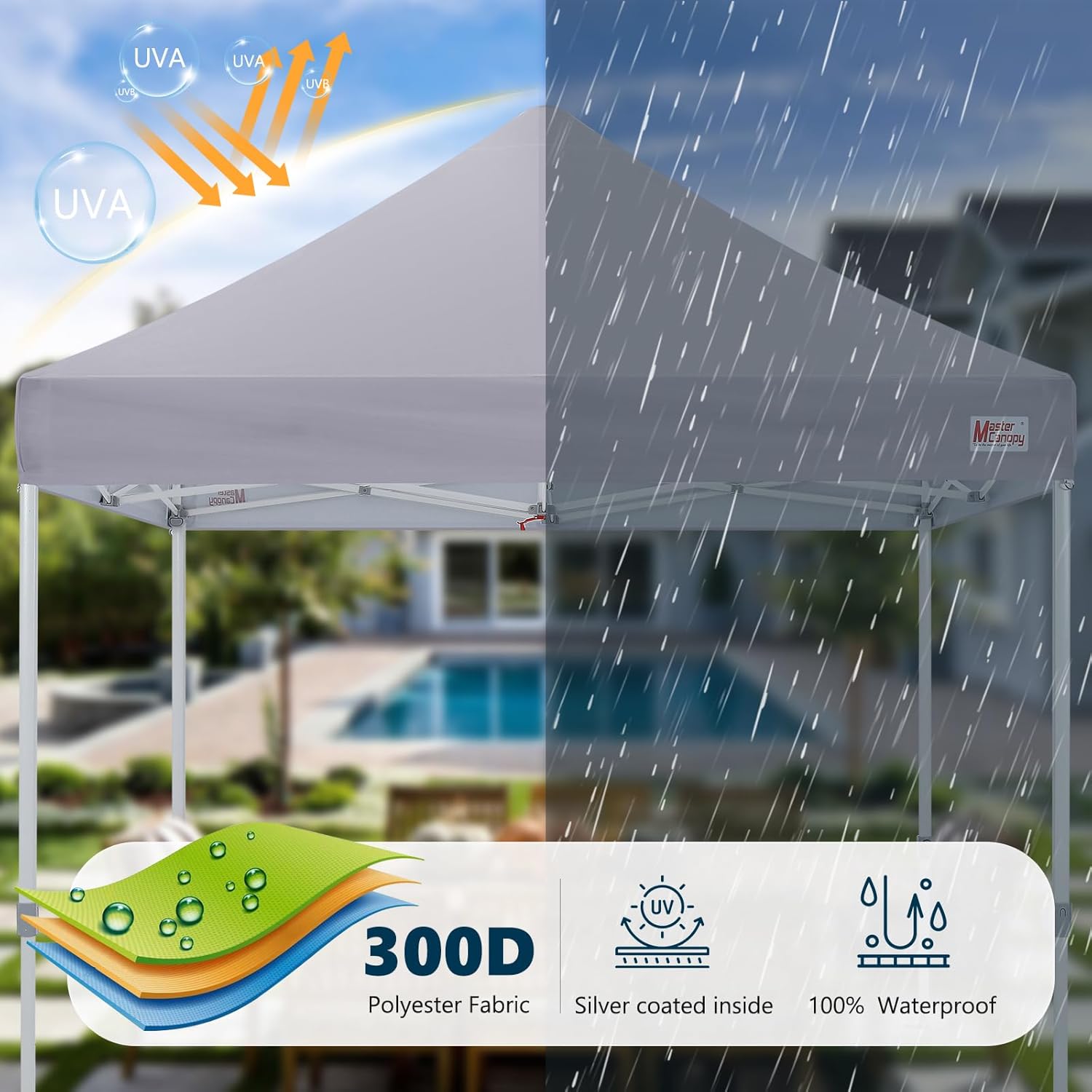 - ✅Large Space: 10 x 10 Pop Up Canopy with straight legs provides a true 100 square feet shade. Big enough for about 6-10 people to sit under it. Center height is 132 inch. Suitable for market stalls, parties, picnics or any outdoor events. MASTERCANOPY commercial canopy tent is suitable for both sunny and rainy days.