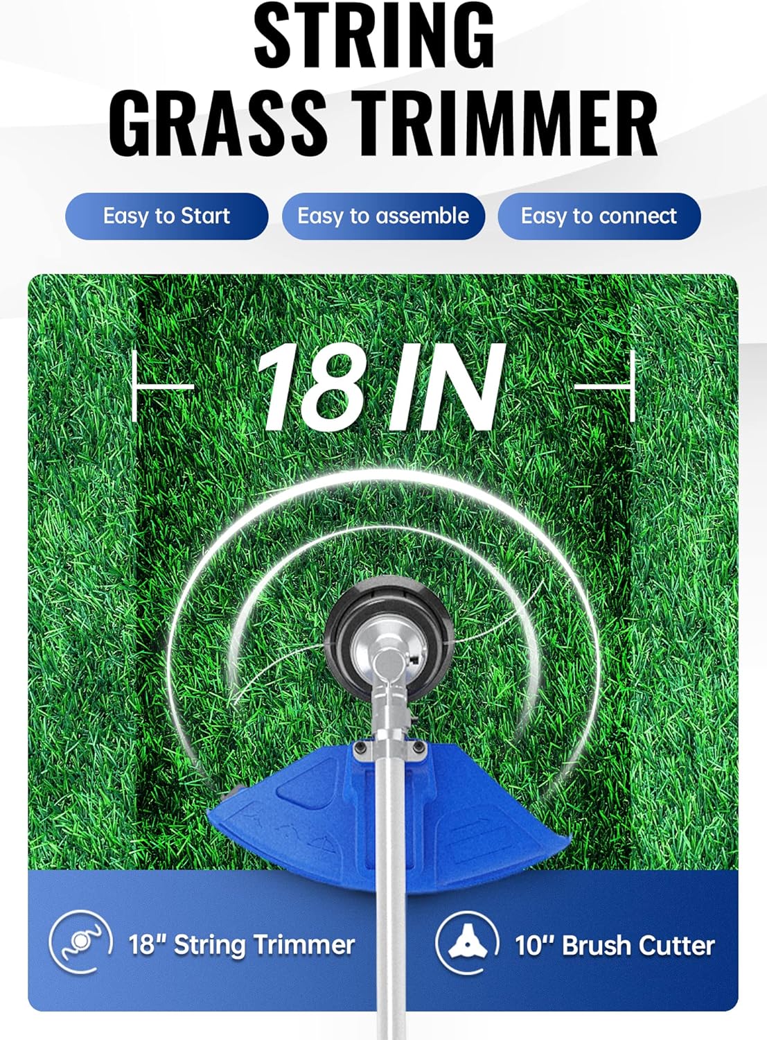 - 3 in 1 Multi-function: 18" String Trimmer/Edger and 10" Brush Cutter included.