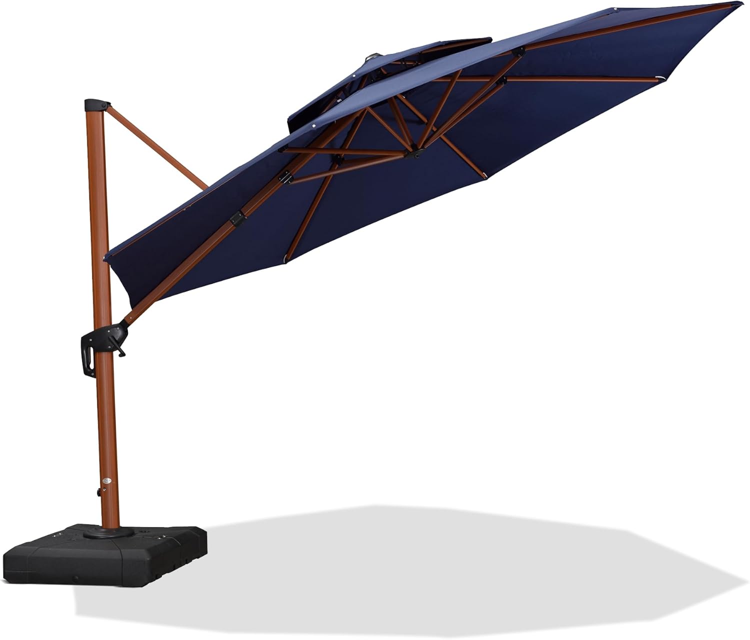 PURPLE LEAF 12 Feet Double Top Deluxe Round Patio Umbrella Offset Hanging Umbrella Cantilever Umbrellas Outdoor Market Umbrellas Garden Umbrella, Navy Blue