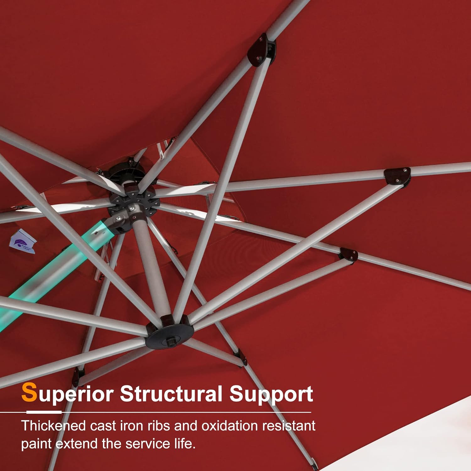 - All-aluminum umbrella pole and 8 heavy-duty ribs, anti-oxidation spray painted, maintain a long period life