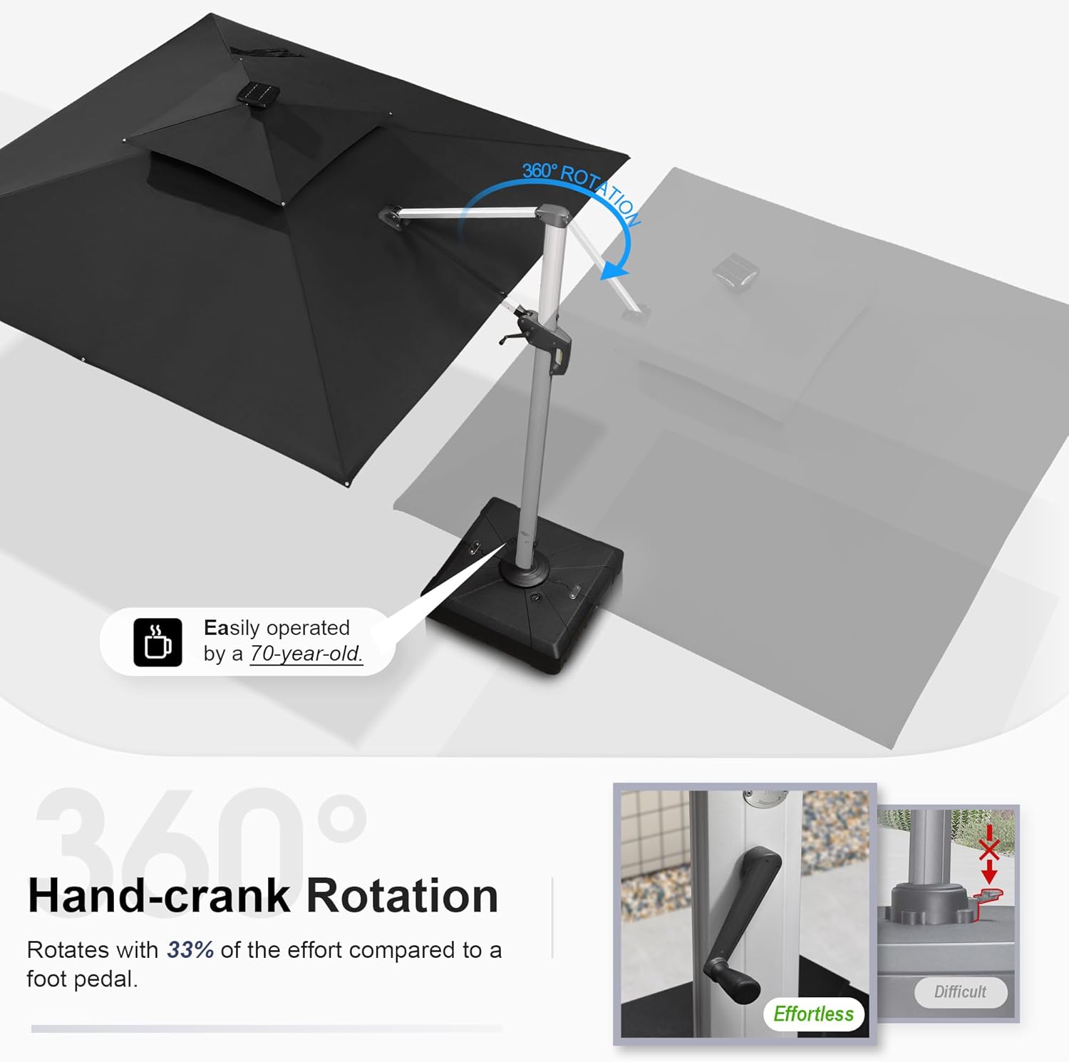 - Multi-function adjustment: Unique handle design and crank system, 6 height and angle to choose, 360 degree rotation for easier shading area control