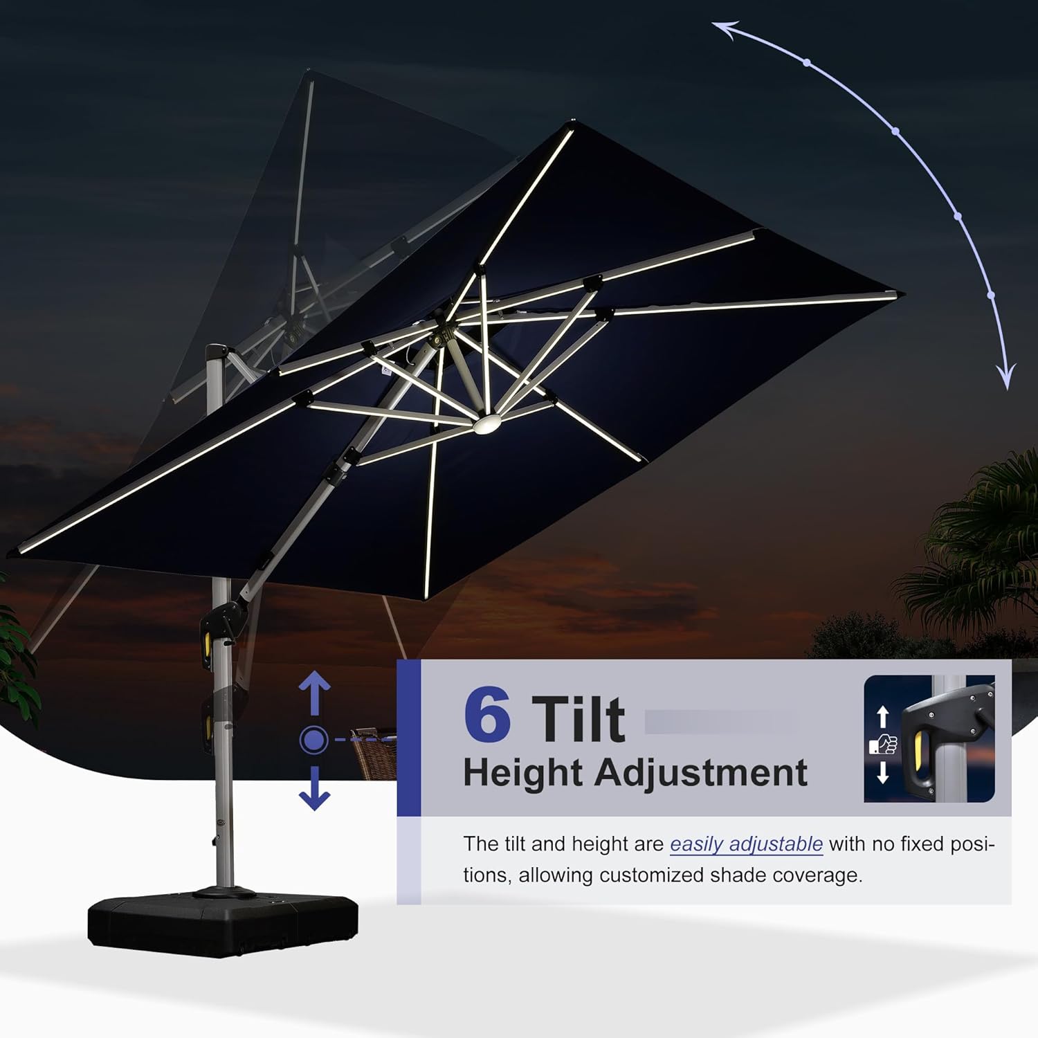 PURPLE LEAF 9 Feet Double Top Deluxe Solar Powered LED Square Patio Umbrella Offset Hanging Umbrella Outdoor Market Umbrella Garden Umbrella, Navy Blue