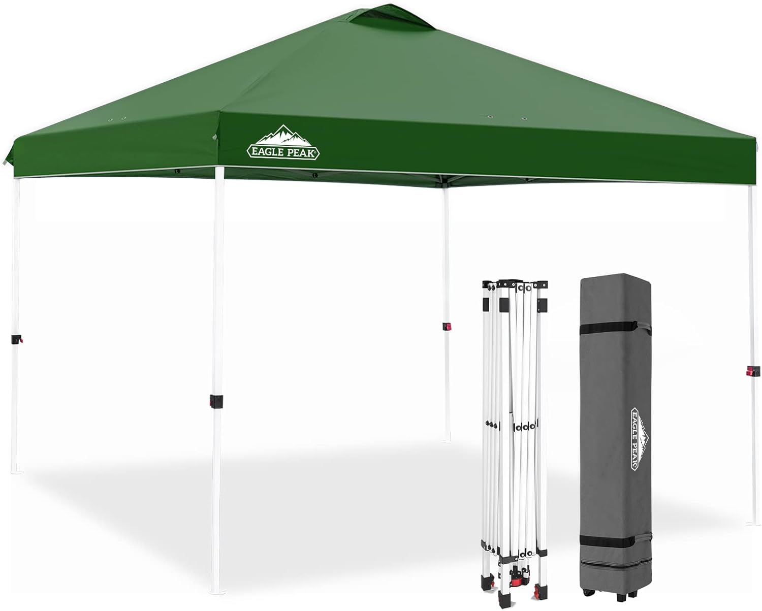 EAGLE PEAK Pop Up Canopy Tent with Wheeled Carry Bag, 8 Stakes, 4 Ropes, 4 Weight Bags, Easy Set Up Tent Canopy, 10x10 ft, 100sqft of Shade, Green
