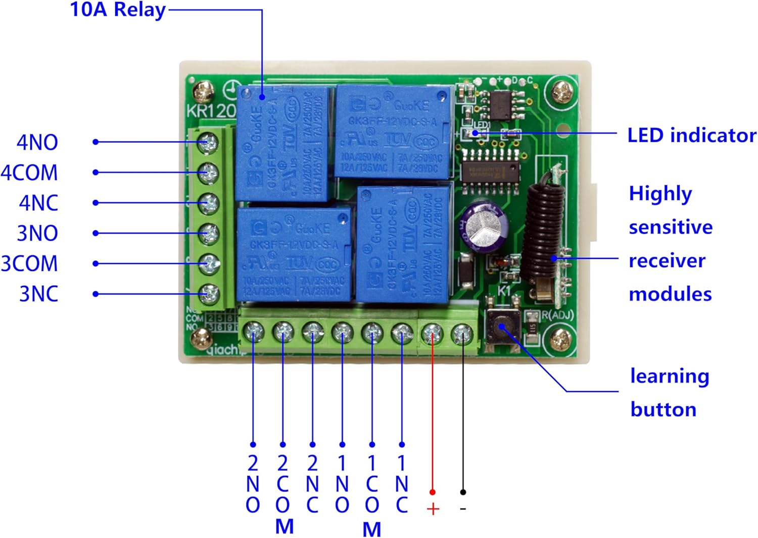 - 【4CH for More Control & Security 】Adjustable working way, on/off. Switch Momentary / Toggle / Latched. All remote control switch kits support 433mhz frequency. Learning code has high-level security for its low repetitive rate and re-learn mode, by which it can delete the old code and re-learn a new code when a remote control get lost, so you are always in control of it.
