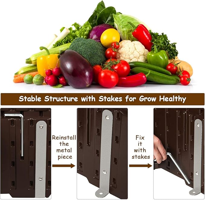 - 【Stable Frame with Ground Nails】: For keep the garden bed stable, there are four ground stakes included. With this ground nails, you can firmly fix the planting box to the ground, so that without worrying about being blown away by the wind. Besides, four corner brackets are prepared for keep the panels in place.